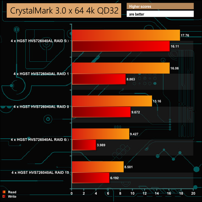 Crystalmark is a useful benchmark to measure theoretical performance levels of hard drives and SSD’s. We are using V3.0.3.