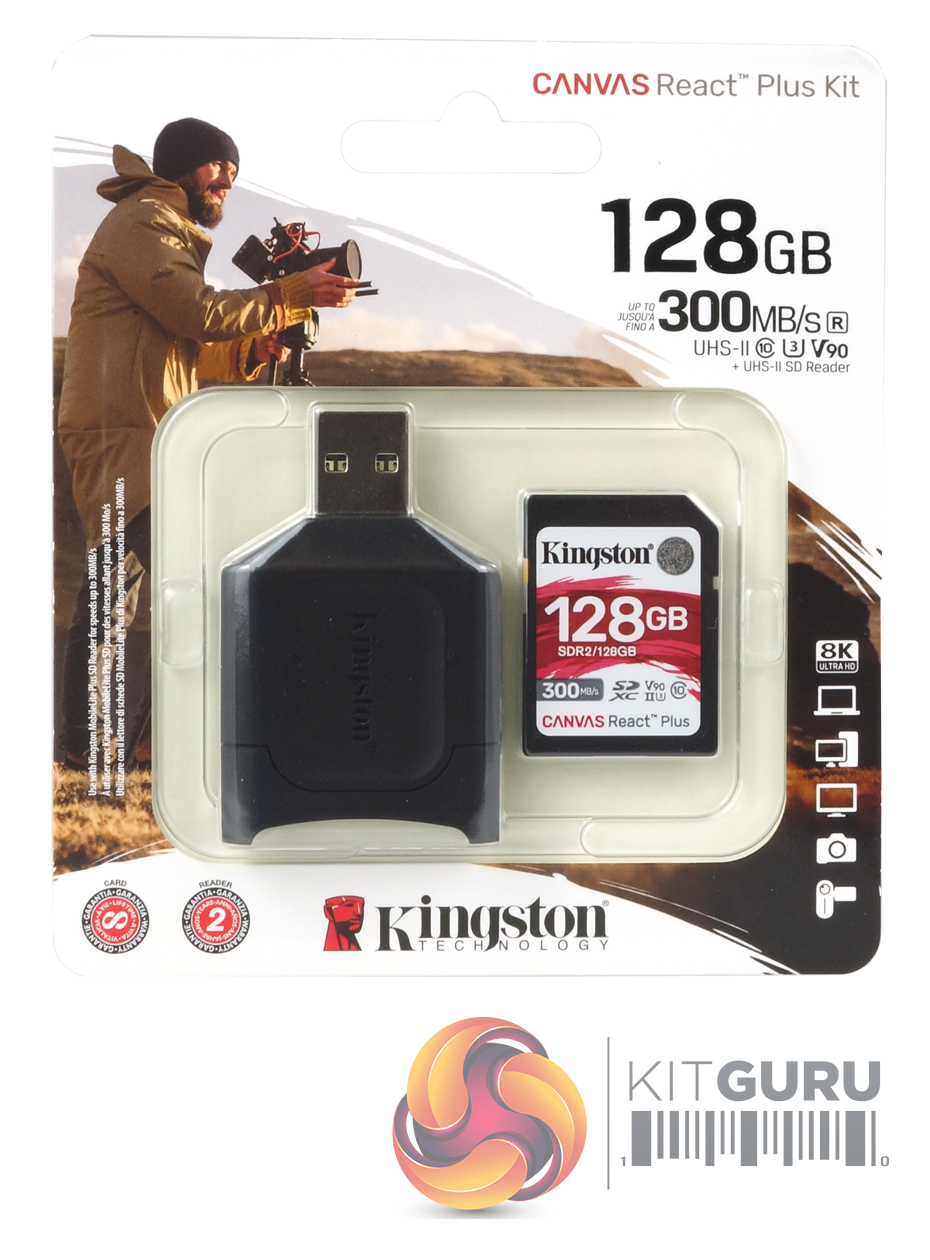 The flagship Canvas React Plus series are, at the time of writing, the fastest SD cards Kingston offer with speeds of up to 300MB/s for reads and 260MB/s for writes. Designed for use in 4K/8K professional cinema cameras, the React Plus are rated at Class 10, UHS-II, U3, V90 cards and come in four capacities; 32GB, 64GB, 128GB (the card Kingston sent for review) and 256GB. Out of the box the 32GB card is formatted as FAT32 while all the others are exFAT. The cards come bundled with a USB 3.2 Gen 1 MobileLite Plus SD Reader.