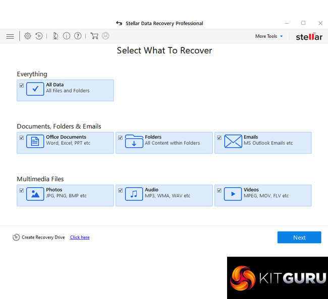 Previously known as the rather long-winded Stellar Phoenix Windows Data Recovery Professional, Stellar Data Recovery Professional supports data recovery from SSDs, hard drives and USB drives formatted with NTFS, exFAT and FAT (FAT16/FAT32). It also supports data recovery from a crashed and/or unbootable system as well as recovering files from scratched or partially burned optical media such as CD or DVDs.