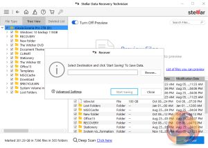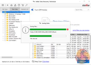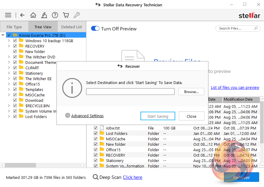 After you have chosen a location to save the files to it's just a matter of clicking on the Start Saving button. We chose to save the whole 301GB of found data. It took 43 minutes to write the data to a PCIe Gen 3 NVMe SSD, 50 minutes to a USB 3.2 Gen2 x 1 (10Gbps) external SSD and 5 hours 30 minutes to a NAS via a 2.5Gb/s network.