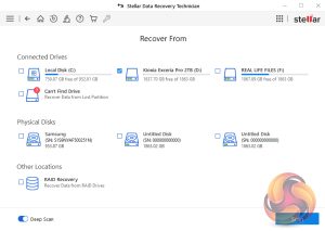 Thanks to the easy-to-follow dashboard, recovering data is pretty straightforward. The first job is to choose what data you want to recover, once this is done, clicking “Next” brings up the Recover From page. The Recover From section lists all the drives the software has found including external drives, optical drives, flash media and with the Technician version, any RAID arrays. Then it's just a matter of clicking the Scan button. We are using a 2TB Kioxia Exceria Pro PCIe Gen4 NVMe SSD to test this software.