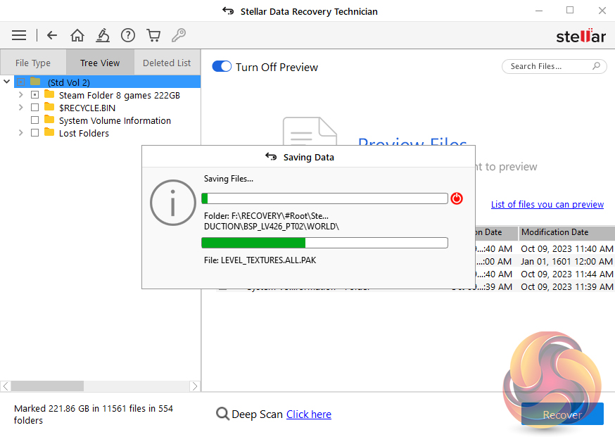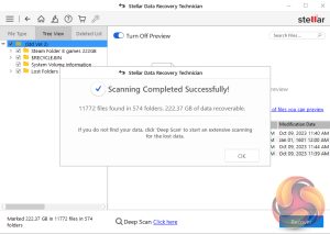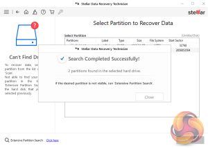 Data Recovery Technician then displays a list of drives it has found on the system. Select the drive with the missing partition and then press Search, a scan for lost or deleted partitions will be performed in the selected drive. When searching for the lost/deleted partitions, the Data Recovery Technician dashboard disappears but as soon as it's done searching it re-appears. It took the software just over 3 seconds to scan the complete disk to find the lost partition and its data on the Kioxia Exceria 2TB Gen 4 SSD we were using.