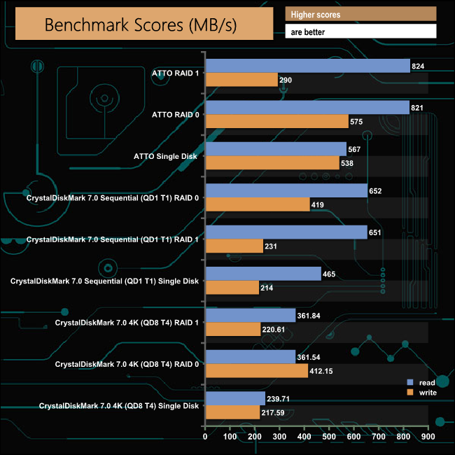 Use ATTO Disk Benchmark to test any manufacturers RAID controllers, storage controllers, host adapters, hard drives and SSD drives and notice that ATTO products will consistently provide the highest level of performance to your storage.