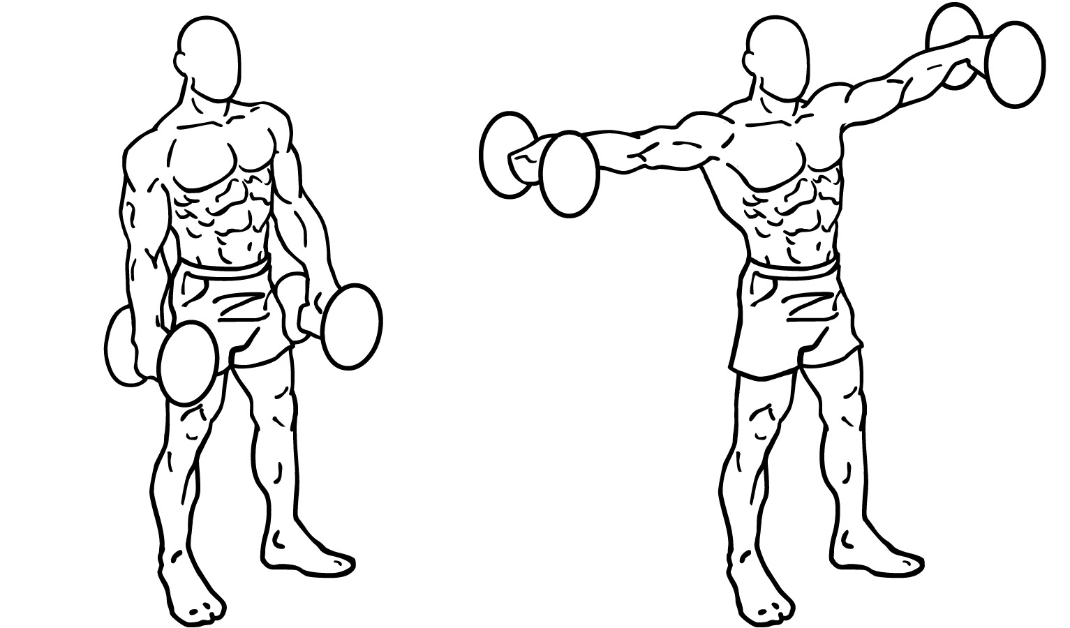- Dumbbell lateral raises – Pick a weight that you know works for you and hold it by your side, standing up straight. Keep that pose and lift the weights up at your sides, with your arms almost completely extended, with just a slight bend in the elbow. Raise them to shoulder height, hold for a second and then slowly lower them again. Try and a complete a set of 6-12 repetitions and repeat as needed to push yourself.