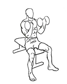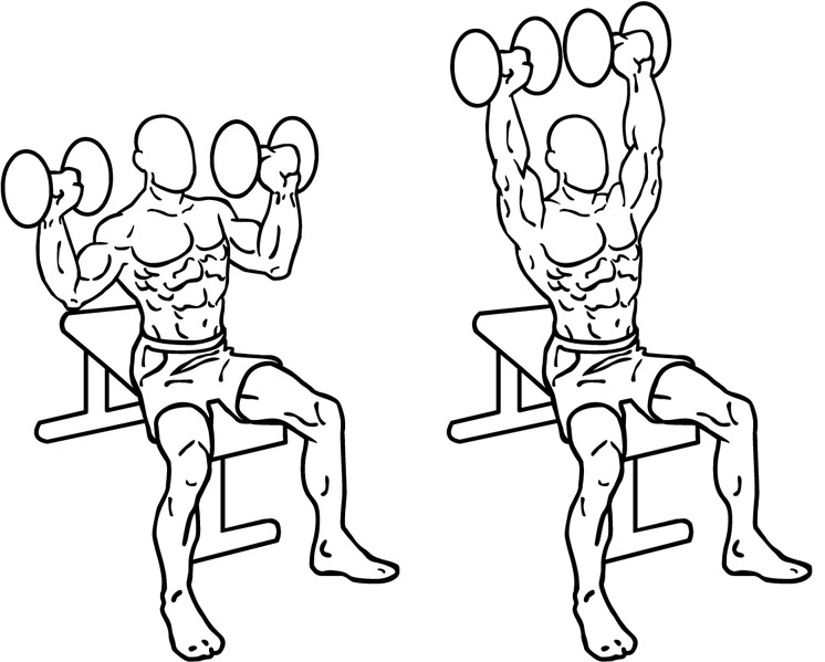 - Dumbbell shoulder press – Pick a weight that you can lift easily enough and hoist it above your shoulder so it's sitting comfortably, with your palms facing forward. Press it above your head until your arm is almost (but not quite) extended, while exhaling, hold for a second and then slowly lower it back down. Repeat for each side, or complete simultaneously if you prefer. See if you can do 6-12 reps to start with and if you can, complete another set or two and see how you fare.