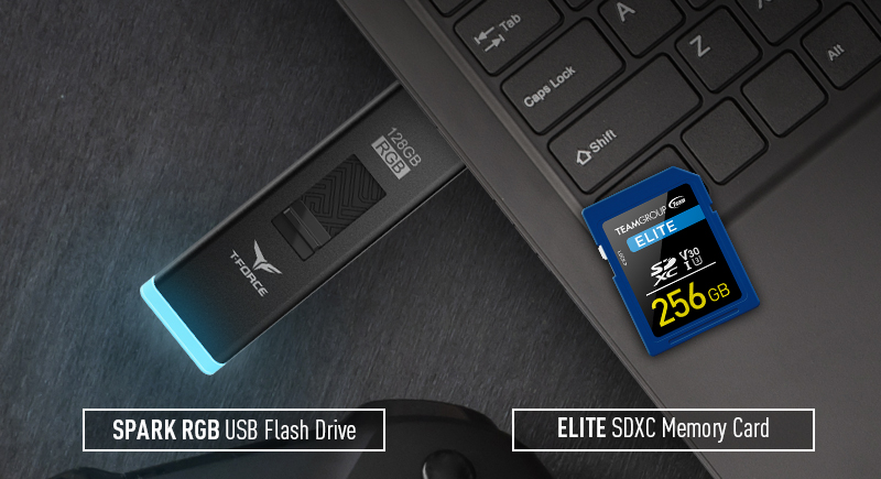 TeamGroup is about to expand its portable storage solutions portfolio with a new USB flash drive and a new memory card. Both the T-Force Spark RGB USB drive and the Elite SDXC memory card bring a “fresh new look to storage devices” and offer high capacity in a portable format for your data.