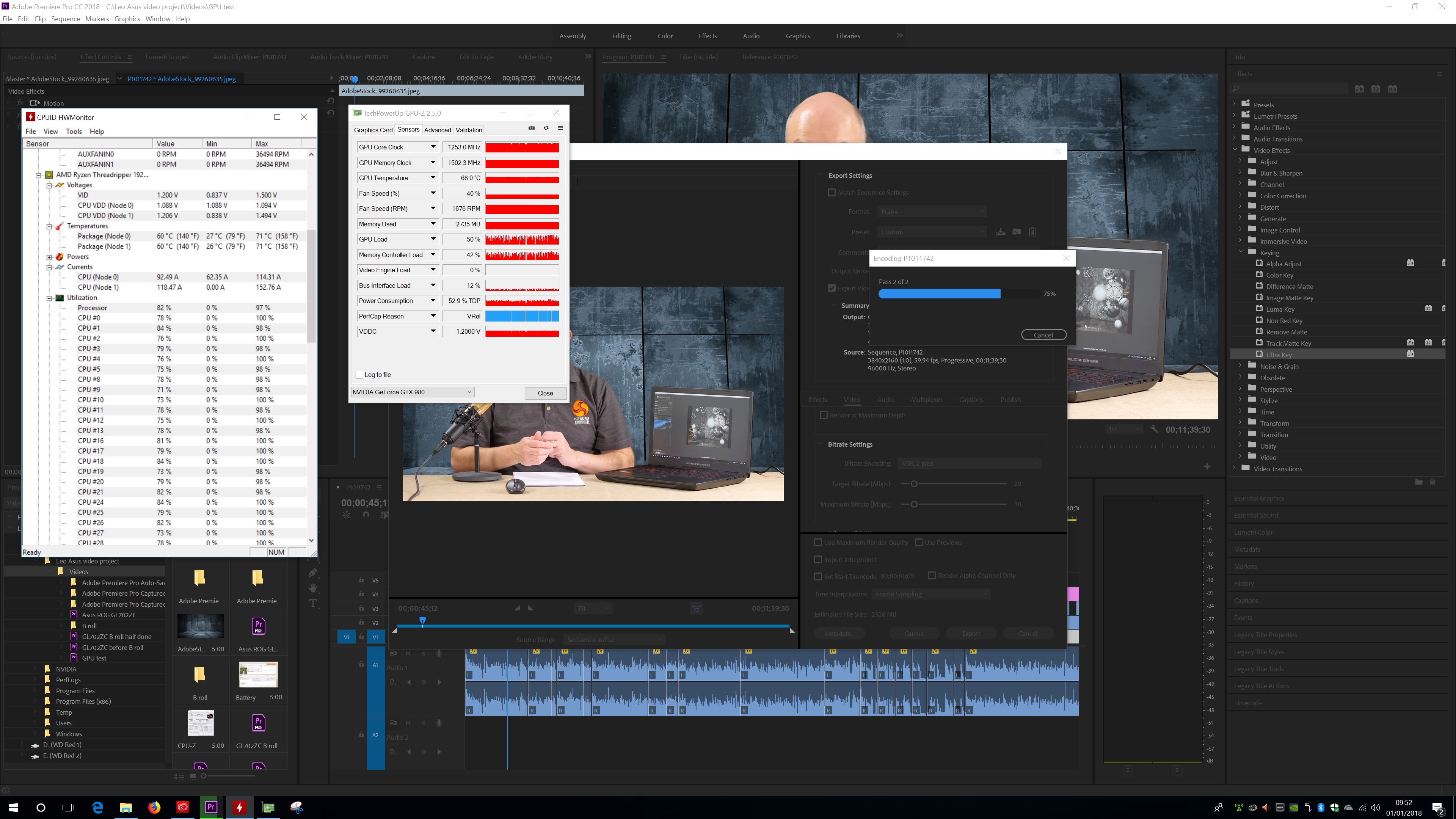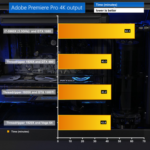 Moving across to the AMD Threadripper 1920X with GTX 980 the time decreased to 43 minutes and 16 seconds which feels right considering I was working with an extra 50 percent CPU cores.