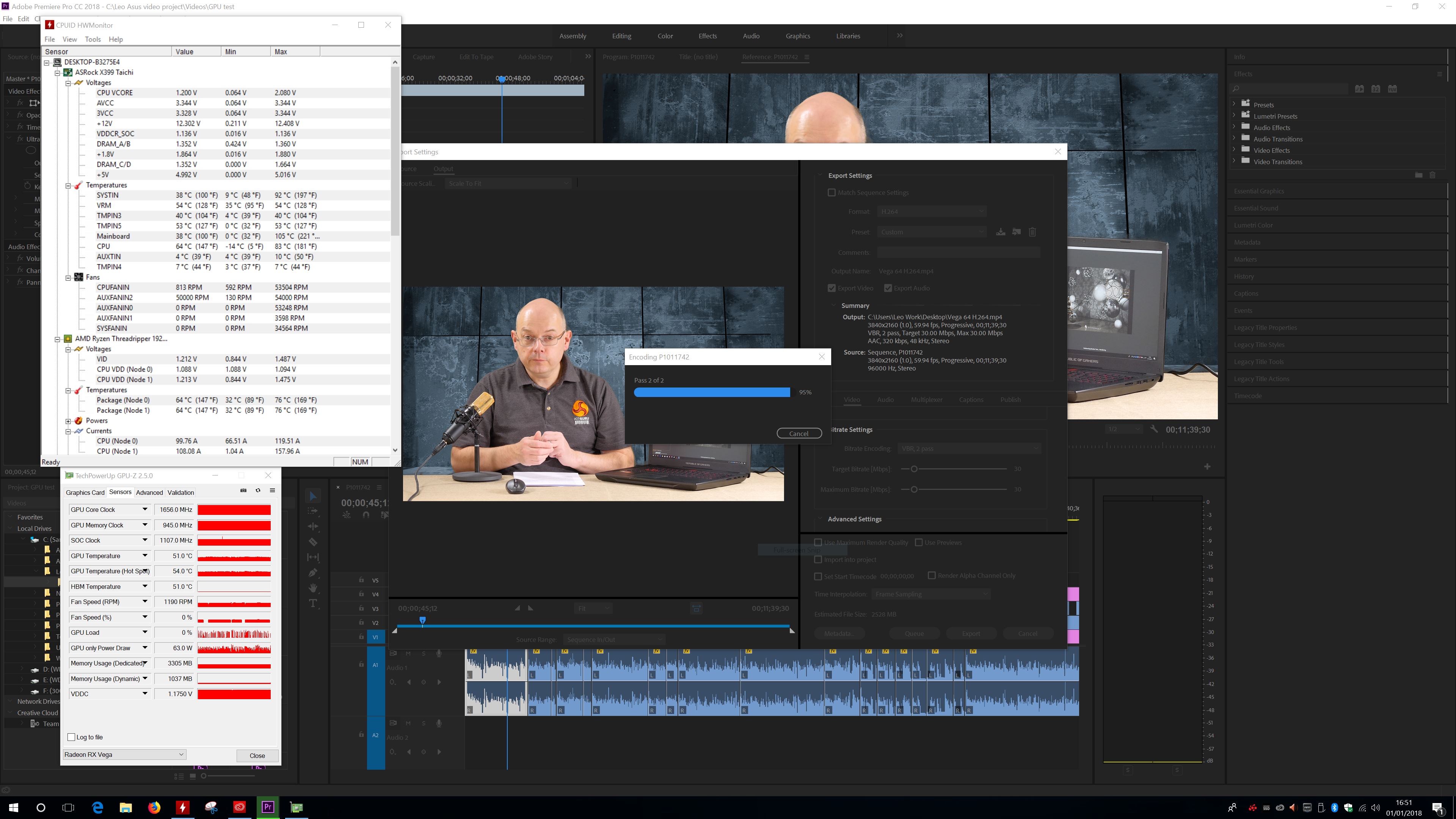 As I spell out in the video the baseline test was encoding a 4K video on my regular PC with a Core i7-5960X (8-cores at 3.3GHz) and a GTX 1080 graphics card. I do a two-pass output at 30Mbps and the output took 62 minutes 18 seconds, which is absolutely typical for the work I do.