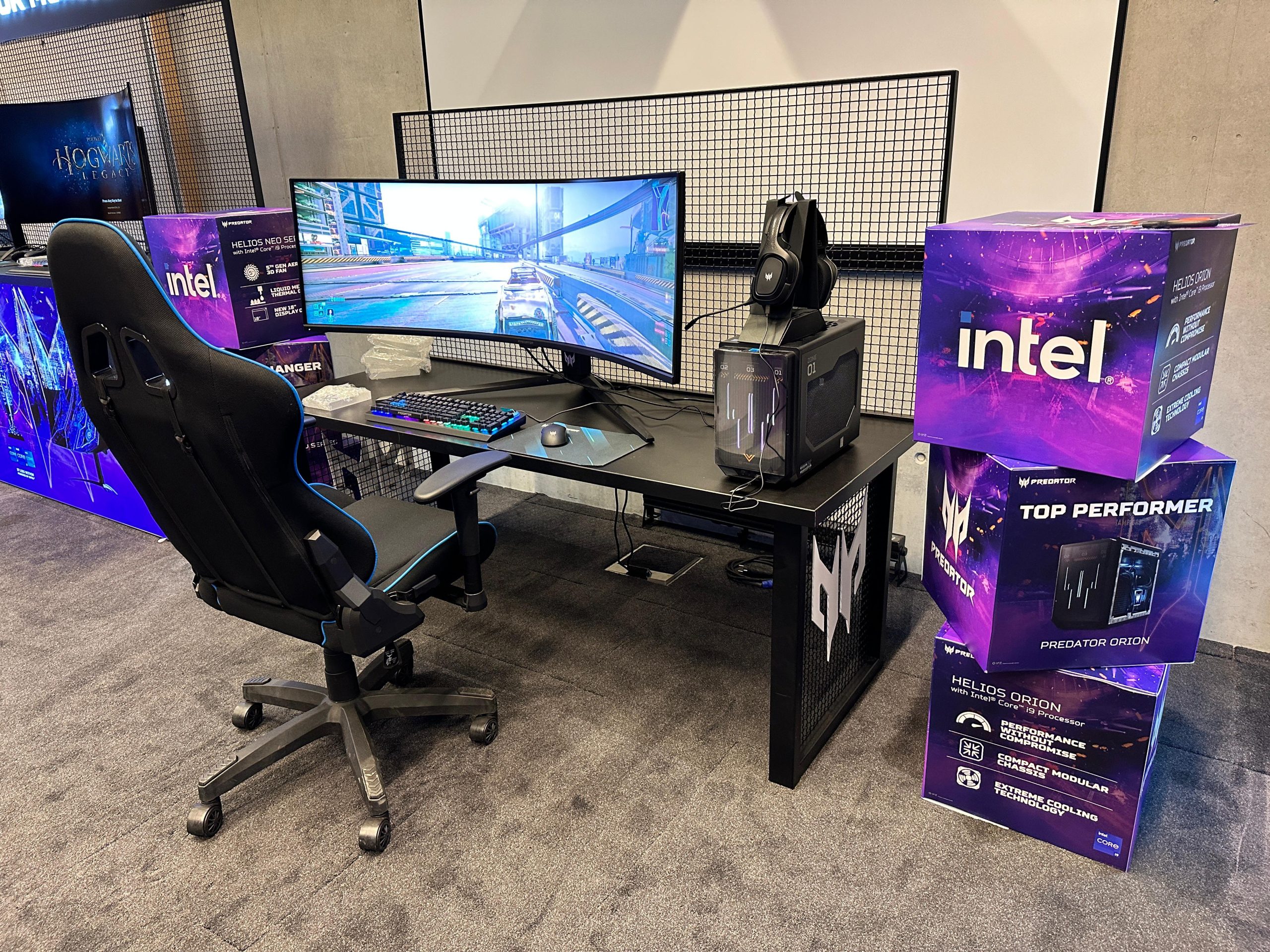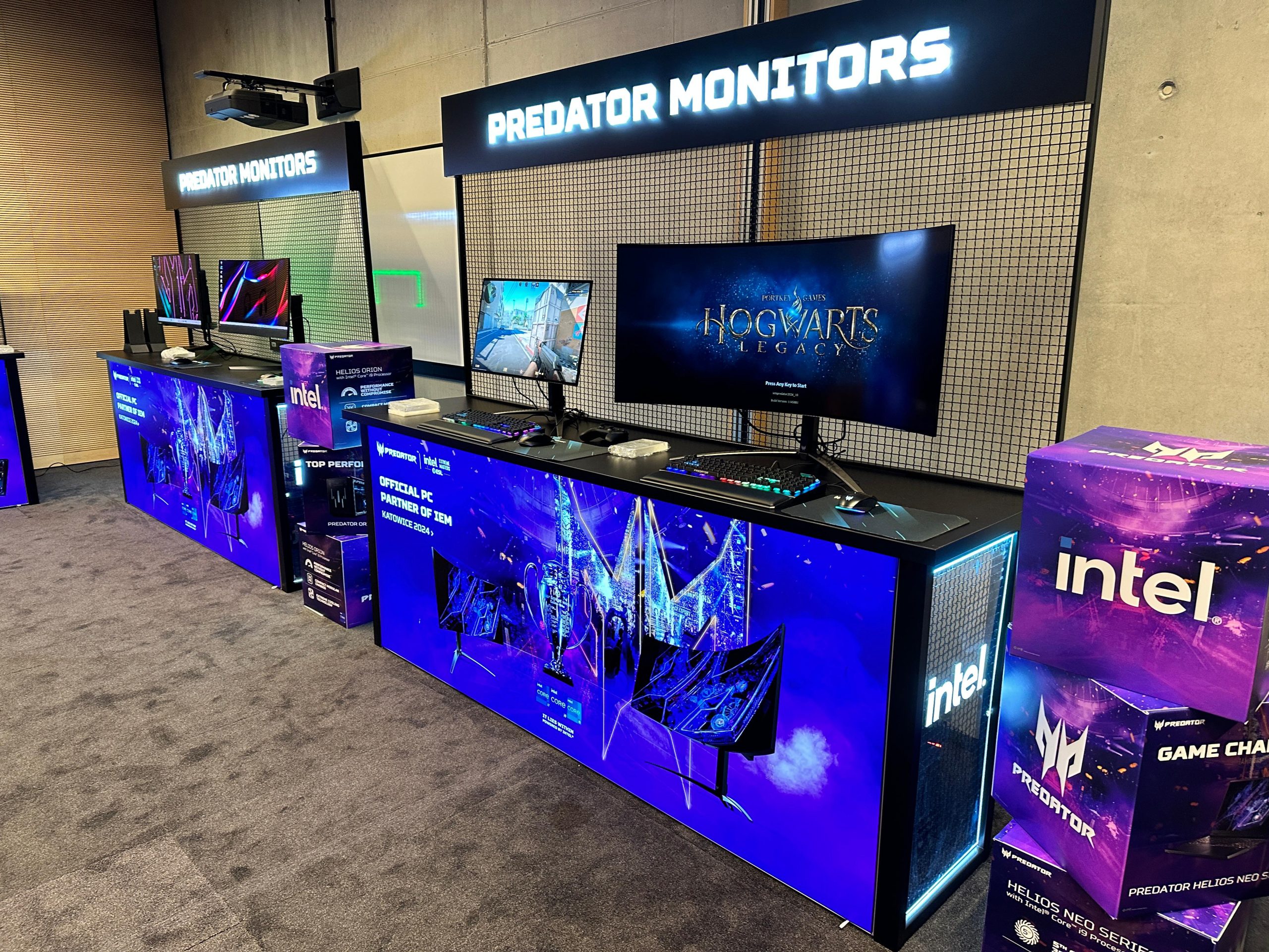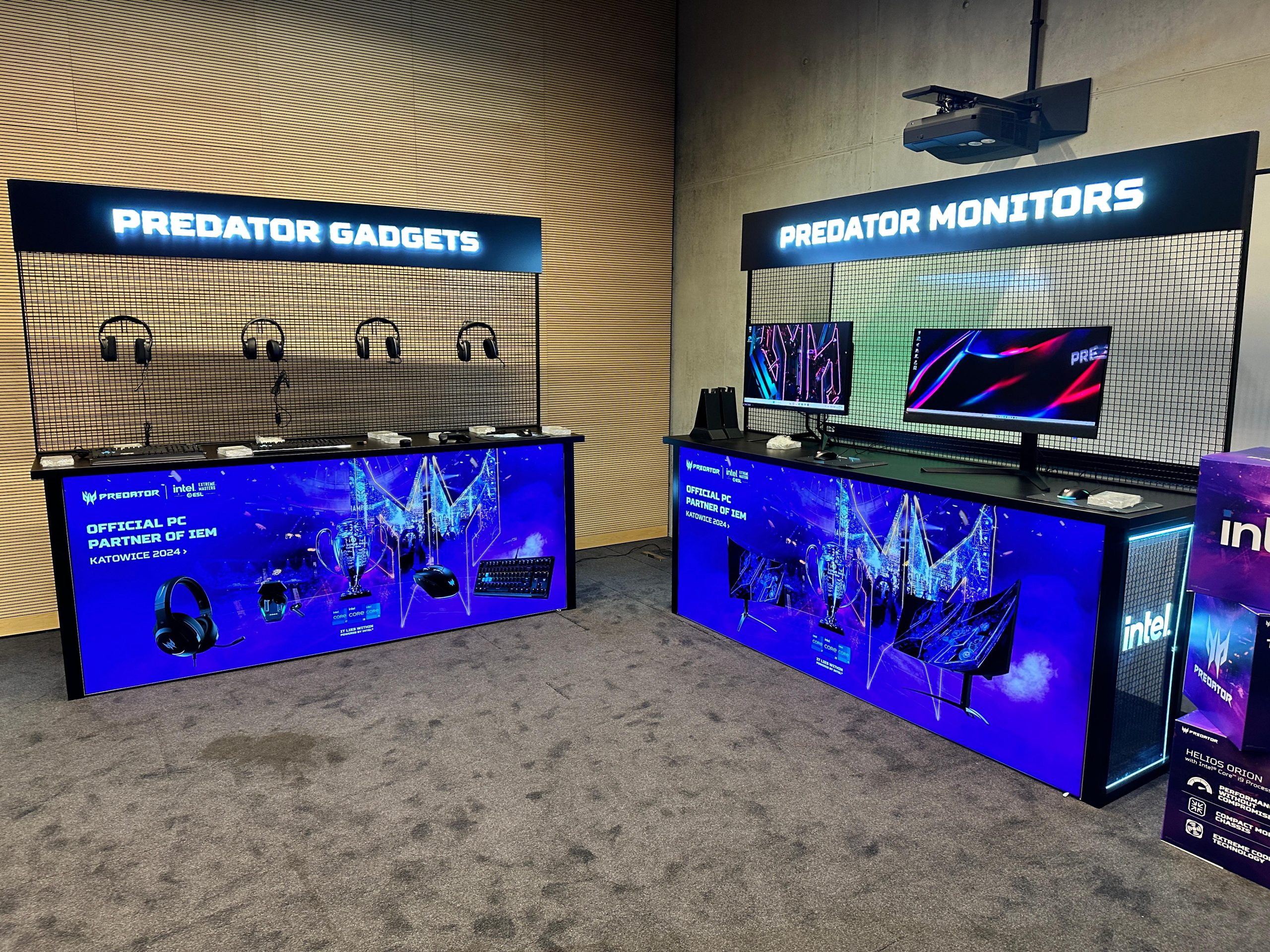 Acer were showcasing a number of new monitors at the Spodek Arena. The Predator XB3, Predator X34V, Predator X45 and Predator Z57. There are features and specs across the range of monitors to match just about any requirement. From OLED to Mini-LED, 16:9 to super ultrawide. The Predator Z57 was a particular highlight – a massive 57″ mini-LED panel running a resolution of 7680×2160!