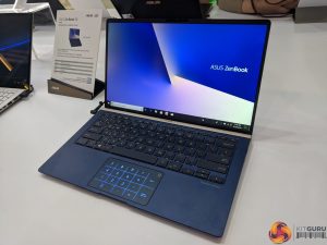 The ZenBook 15 is the flagship. It comes with a 92% screen-to-body ratio, an Intel Core i7-8565U or Core i5-8265U depending on the model, up to 16GB of DDR4 RAM and an Nvidia GTX 1050 Max-Q graphics card. The display comes in 4K and 1080p variants and there are different sized SSD storage options. Personally, the think I like the most about it is the funky trackpad.