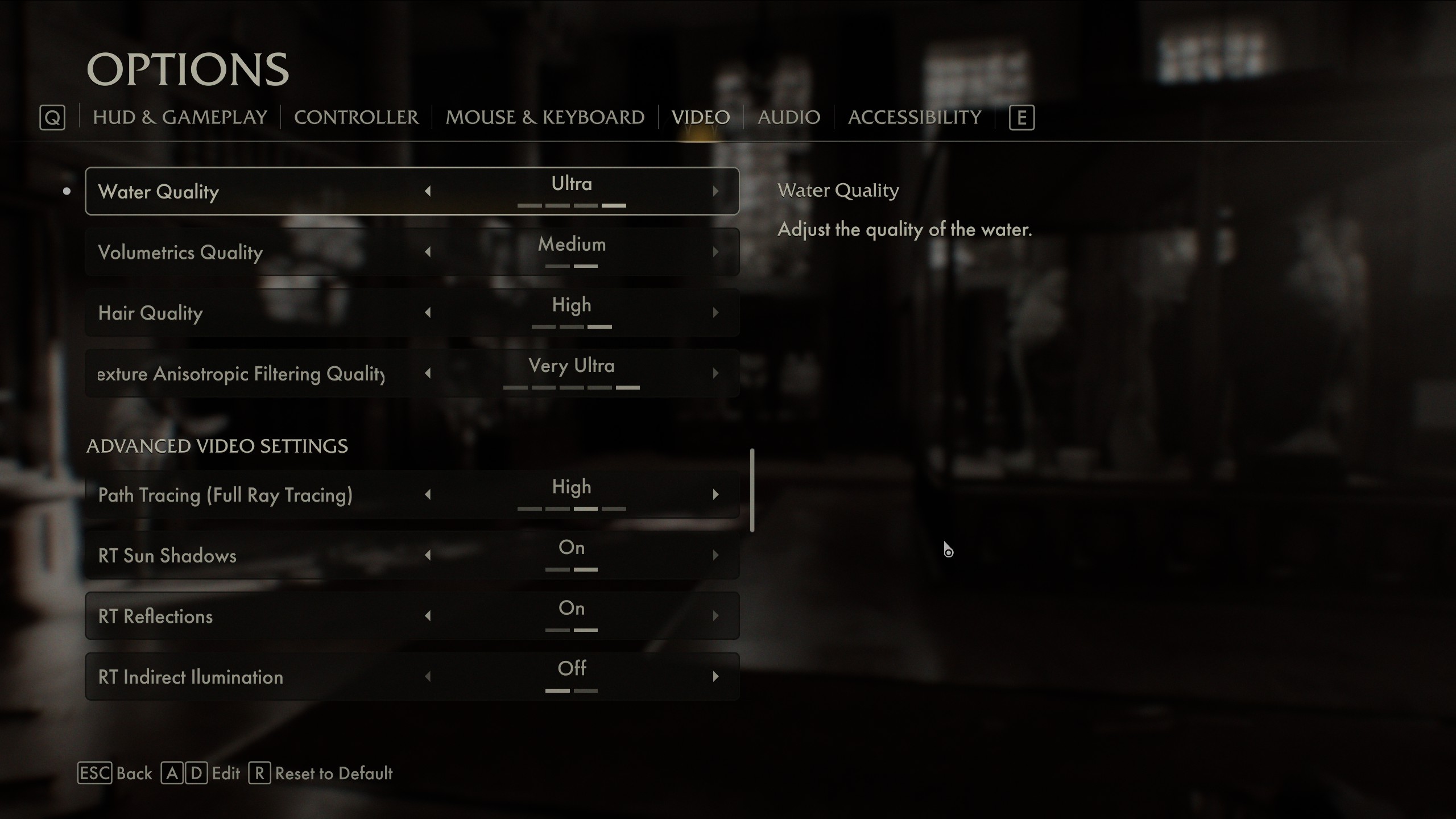 I've been playing on a PC equipped with a Ryzen 9 5900X processor, 32GB of DDR4 RAM and an RTX 4080 graphics card. This is a high-spec machine, meeting the requirements for full Path Tracing. In my mind, the main reason to switch on full Path Tracing is for the added indirect lighting effects. However, this is far more expensive to turn on compared to RT Shadows and Reflections, leading to the biggest drop in frame rate out of all the graphics settings available.