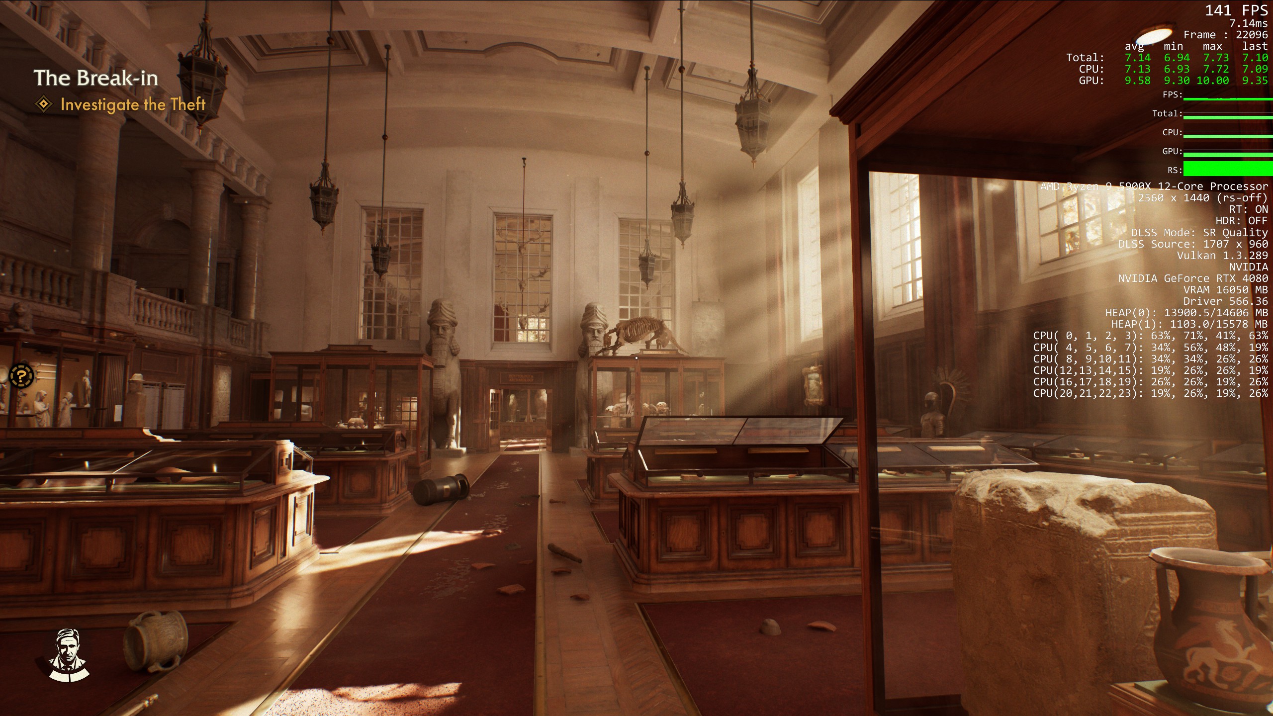 The game also equally balances workloads across all my CPU cores. Typically, a 12+ core CPU like the Ryzen 9 5900X isn't going to be as good for gaming as an eight-core Ryzen 7 5800X, as most games aren't designed to take full advantage of the larger core-count CPUs we have on PC. That is not the case here, with this title making great use of all 12 CPU cores and additional threads by distributing the load more evenly.