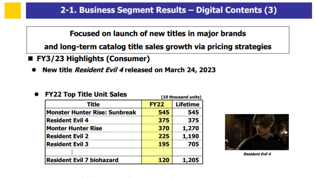 Breaking down some of Capcom biggest games from the past 12 months, the company’s best-selling product for the year was Monster Hunter Rise: Sunbreak – shifting nearly 5.5 million units during the period.