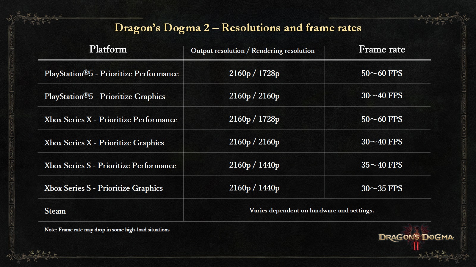 “A new update for Dragon's Dogma 2 is available now on all platforms! Changed the options in ‘Graphics’ within the Options menu to ‘Prioritize Graphics’ and ‘Prioritize Performance.’”
