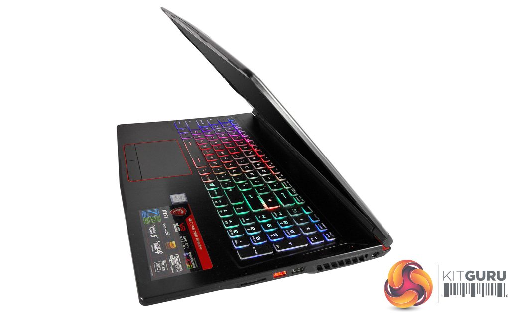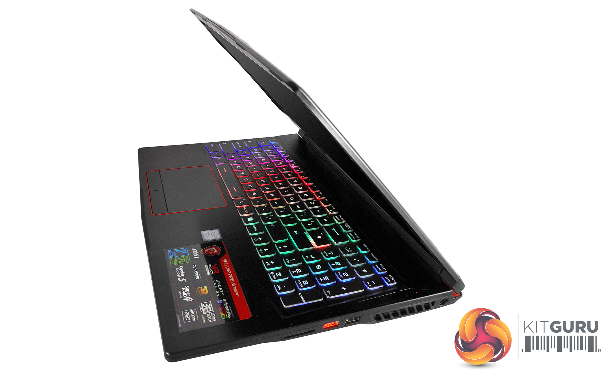Finally the GE63VR Raider 7RE’s base is a massive collection of vents and small angles. It has several sharply angled feet, some of which are soft rubber while others are hard plastic. The latter really don’t make for a very comfortable experience on your lap if you’re wearing shorts, so we’d say that’s a bit of a design flaw.