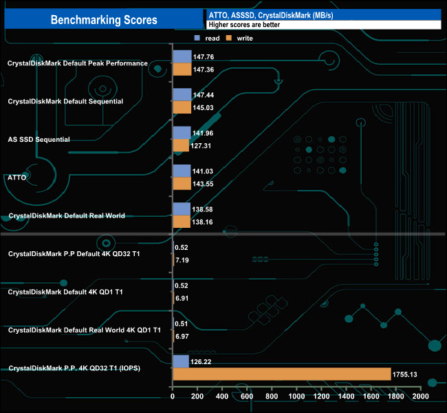 AS SSD is a great free tool designed just for benchmarking Solid State Drives. It performs an array of sequential read and write tests, as well as random read and write tests with sequential access times over a portion of the drive. AS SSD includes a sub suite of benchmarks with various file pattern algorithms, but it is difficult in trying to judge accurate performance figures.