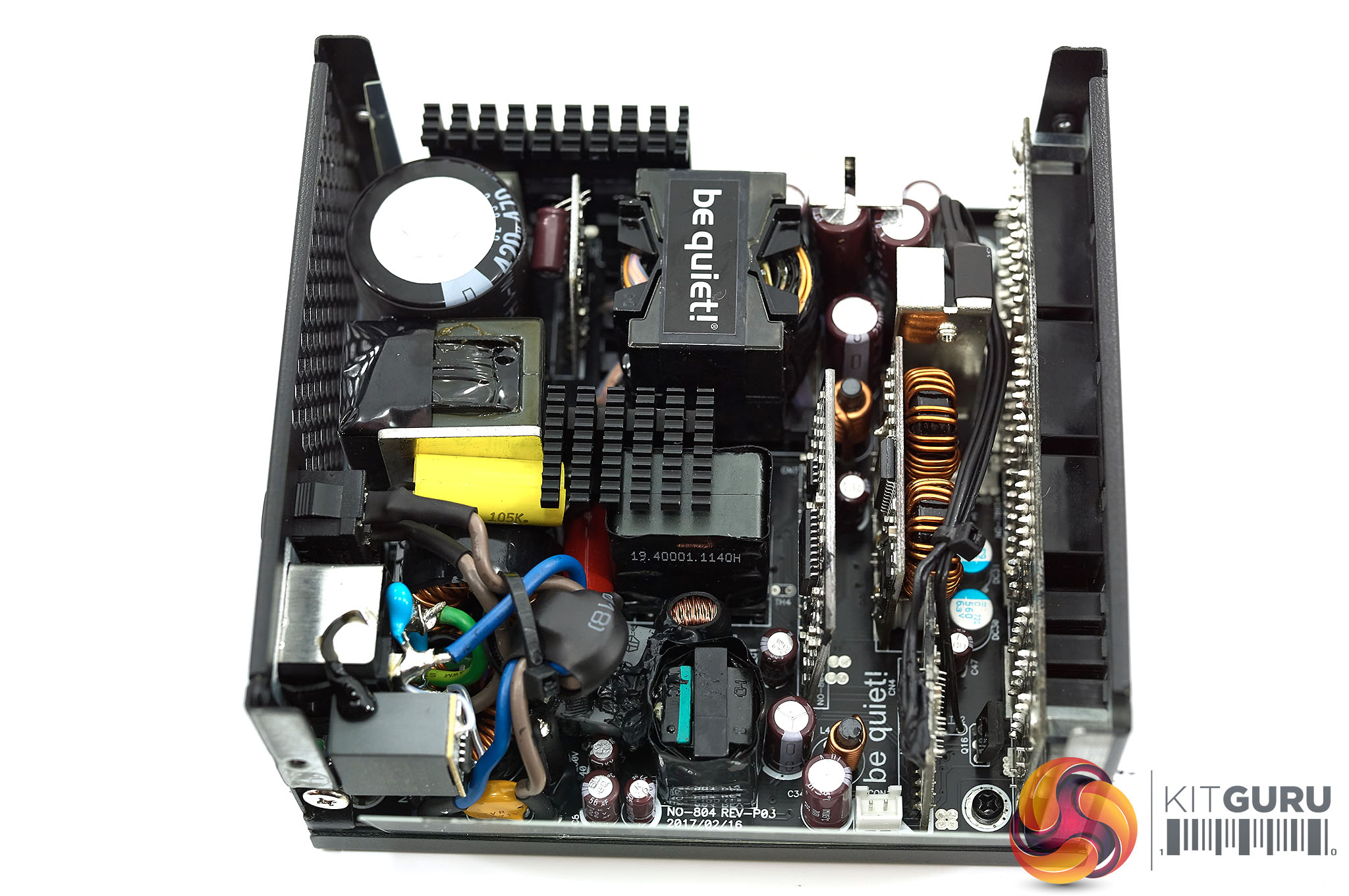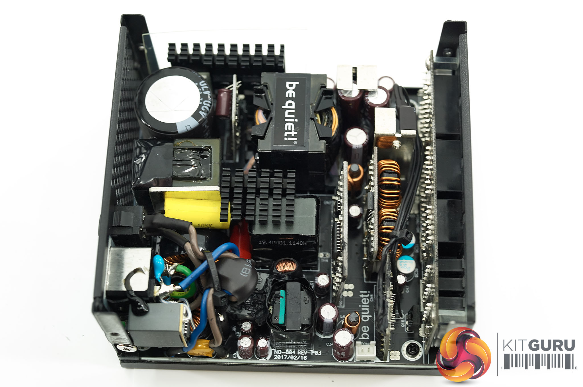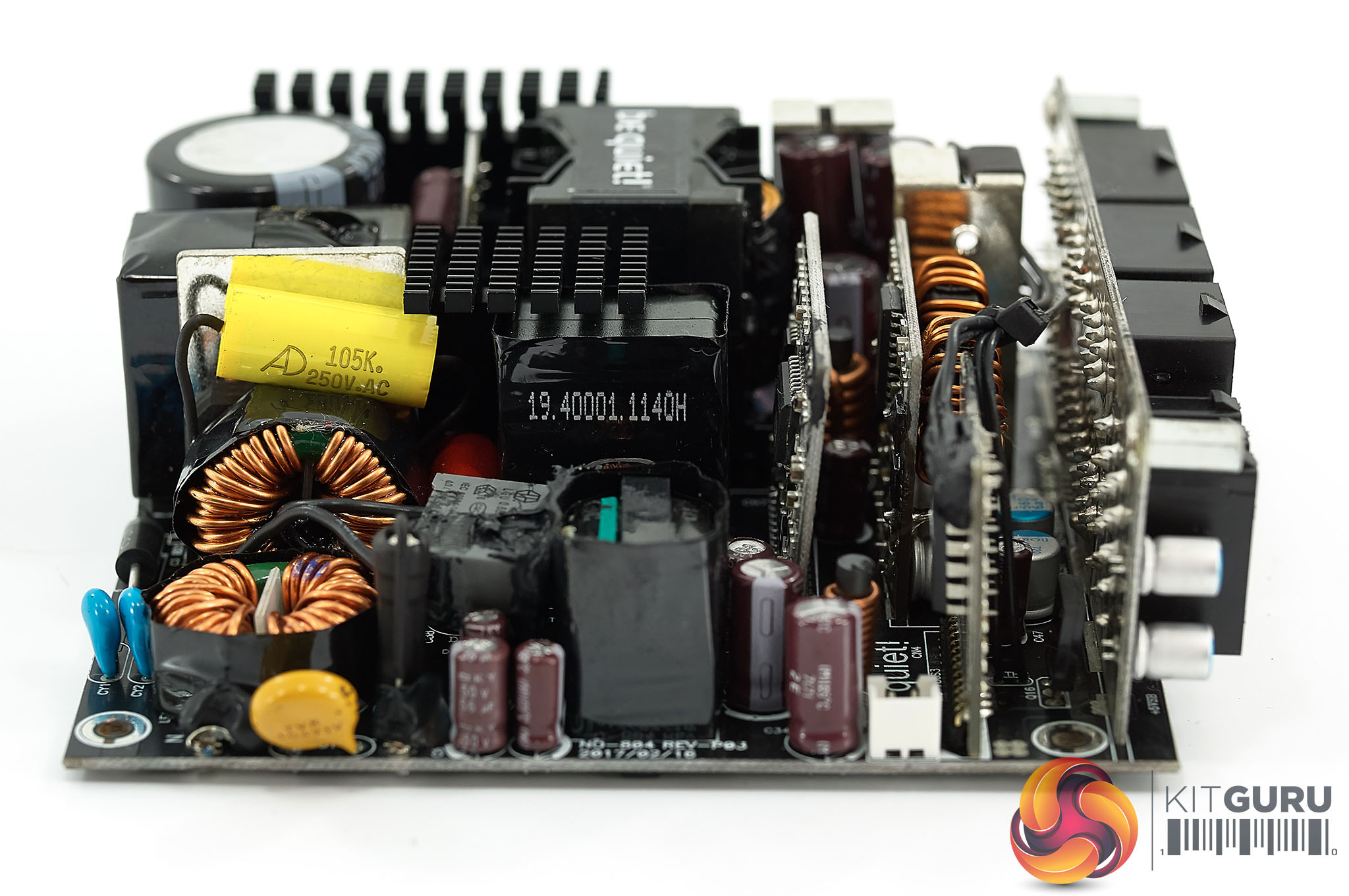The High Power design utilises DC to DC converters to generate the +3.3V and +5V rails from the +12V rail. I was happy to see that unlike some of the be quiet! designs, they are using Japanese capacitors (Rubycon and Nippon Chemi Con) in the primary and secondary stages. The main primary Rubycon capacitor is 85C rated, not 105C. Not a huge deal really as Rubycon make great caps, but worth noting.